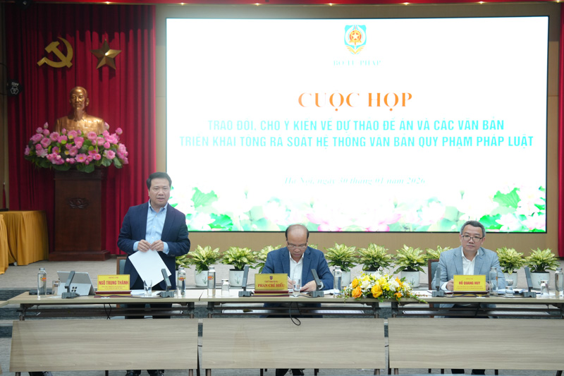 Ngày 30/1, Ủy viên Trung ương Đảng, Thứ trưởng Bộ Tư pháp Phan Chí Hiếu đã chủ trì cuộc họp trao đổi, cho ý kiến về dự thảo Đề án và các văn bản triển khai tổng rà soát hệ thống văn bản quy phạm pháp luật (VBQPPL). Ông Ngô Trung Thành, Phó Chủ nhiệm Ủy ban Pháp luật và Tư pháp của Quốc hội cùng dự.