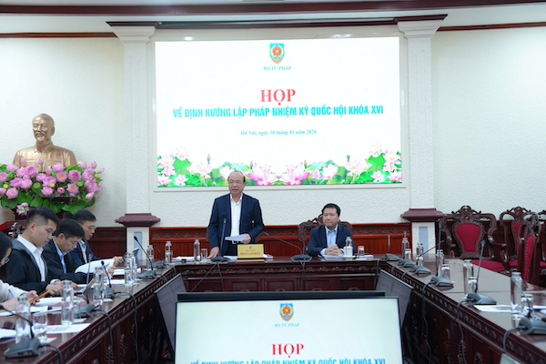 Trong bối cảnh văn kiện Đại hội Đảng chưa được cập nhật đầy đủ, ông đề nghị các cơ quan vừa bảo đảm tiến độ gửi văn bản về Bộ Tư pháp, vừa chủ động điều chỉnh, bổ sung kịp thời khi có nội dung mới để bảo đảm Đề án sát thực tiễn.