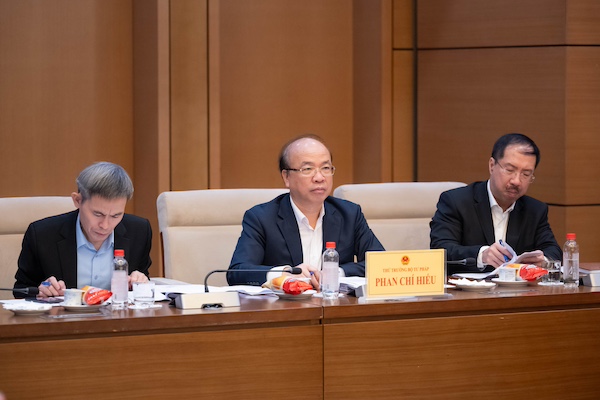 Tại Phiên họp, sau khi nghe Thứ trưởng Bộ Tư pháp Phan Chí Hiếu trình bày Tờ trình tóm tắt 03 dự án Luật: Luật sửa đổi, bổ sung một số điều của Luật Công chứng; Luật sửa đổi, bổ sung một số điều của Luật Trợ giúp pháp lý (TGPL); Luật Tiếp cận thông tin (sửa đổi), các đại biểu nghe đại diện Thường trực Ủy ban Pháp luật và Tư pháp trình bày dự thảo Báo cáo tóm tắt thẩm tra sơ bộ 03 dự án Luật này.