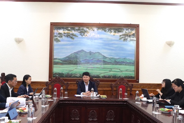 Thứ trưởng Nguyễn Thanh Tịnh nghe báo cáo về dự thảo. (Ảnh trong bài: PV)