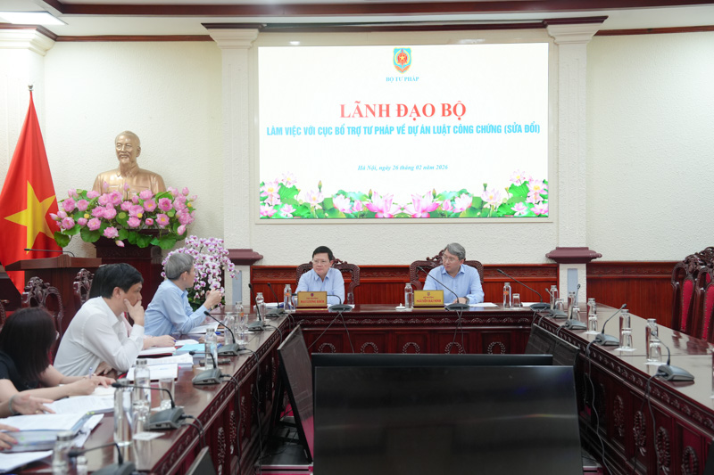 Ngày 26/2, Bộ trưởng Bộ Tư pháp Nguyễn Hải Ninh đã làm việc với Cục Phổ biến, giáo dục pháp luật và Trợ giúp pháp lý về dự án Luật sửa đổi, bổ sung một số điều của Luật Trợ giúp pháp lý (TGPL). Thứ trưởng Nguyễn Thanh Ngọc cùng dự.