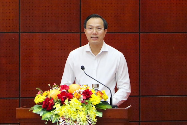 Phó Chủ tịch UBND tỉnh Tây Ninh Đoàn Trung Kiên báo cáo trước Đoàn công tác của Bộ Tư pháp.