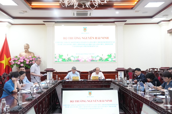 Báo cáo tại buổi làm việc, Cục trưởng Cục KTVB&TCTHPL Hồ Quang Huy cho biết, trong bối cảnh yêu cầu đổi mới công tác thi hành pháp luật ngày càng cao, thể chế, pháp luật trở thành lợi thế cạnh tranh, nền tảng vững chắc, động lực mạnh mẽ cho phát triển, tạo dư địa thúc đẩy tăng trưởng kinh tế “hai con số”, nâng cao đời sống của Nhân dân, bảo đảm quốc phòng, an ninh, đối ngoại của đất nước, việc thiếu một cơ chế đánh giá khách quan, minh bạch sẽ làm hạn chế hiệu quả chỉ đạo, điều hành của cơ quan, người có thẩm quyền. Vì vậy, việc đánh giá hiệu quả công tác thi hành pháp luật là yêu cầu cấp thiết nhằm tăng cường kỷ luật, kỷ cương, nâng cao trách nhiệm của các cơ quan trong thi hành pháp luật.