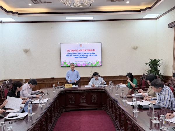 Ngày 24/3, Thứ trưởng Bộ Tư pháp Nguyễn Thanh Tú đã chủ trì buổi làm việc với các đơn vị có liên quan về Đề án “Chiến lược hoàn thiện hệ thống pháp luật Việt Nam trong kỷ nguyên mới”.