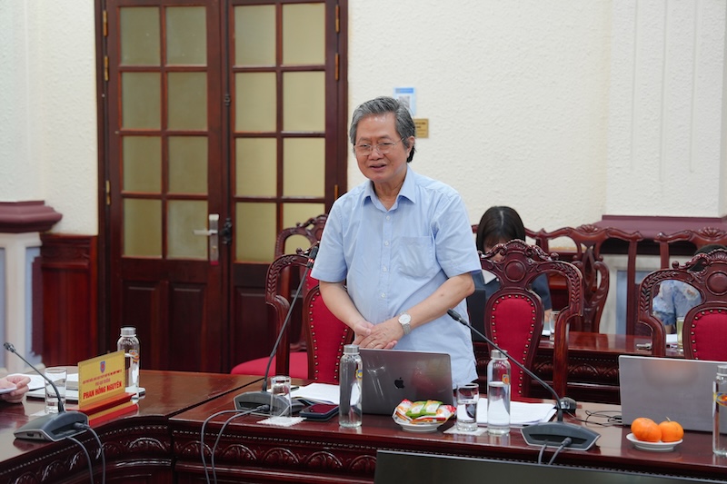 Giáo sư, Tiến sỹ Lê Minh Tâm, nguyên Phó Chủ tịch kiêm Tổng Thư ký Hội Luật gia Việt Nam phát biểu tại cuộc họp.