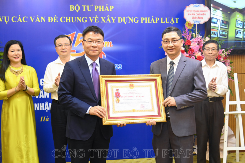 Chiều 03/11, Vụ Các vấn đề chung về xây dựng pháp luật, Bộ Tư pháp đã tổ chức Lễ gặp mặt nhân dịp 15 năm Ngày thành lập (04/11/2008 - 04/11/2023) và đón nhận Huân chương Lao động hạng Ba. Tham dự buổi Lễ có Bộ trưởng Bộ Tư pháp Lê Thành Long, Thứ trưởng Đặng Hoàng Oanh, nguyên Thứ trưởng Đinh Trung Tụng, Phó Bí thư thường trực Đảng ủy Bộ Nguyễn Kim Tinh cùng đại diện lãnh đạo các đơn vị thuộc Bộ Tư pháp.