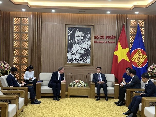 Khẳng định mối quan hệ hữu nghị truyền thống tốt đẹp giữa Việt Nam và Hungari suốt 70 năm qua, Bộ trưởng Bộ Tư pháp Lê Thành Long đã thể hiện mong muốn về việc tiếp tục thúc đẩy quan hệ hợp tác pháp luật và tư pháp trong thời gian tới tại buổi tiếp ngài Ory Csába, Đại sứ đặc mệnh toàn quyền Hungary tại Việt Nam, diễn ra hôm nay – 21/6.