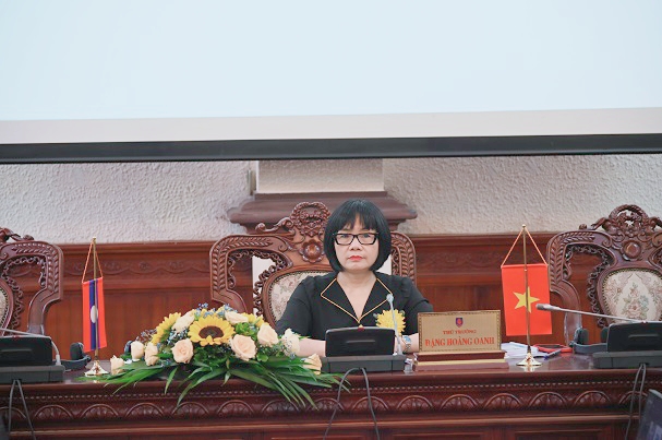 Sáng 20/6, Bộ Tư pháp đã tổ chức Hội nghị trực tuyến đánh giá kết quả triển khai hoạt động Dự án Hỗ trợ Học viện Tư pháp Lào, Thứ trưởng Bộ Tư pháp Đặng Hoàng Oanh, Trưởng Ban Chỉ đạo Dự án phía Việt Nam, Thứ trưởng Bộ Tư pháp Lào Kệt Sạ Ná-Phôm Mạ Chăn, Trưởng Ban Chỉ đạo Dự án phía Lào dự và chủ trì Hội nghị.