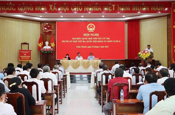 Sáng nay 28/4, Đoàn Đại biểu Quốc hội (QH) tỉnh Kiên Giang, đơn vị số 2 gồm có bà Nguyễn Thị Kim Bé, Tỉnh Uỷ viên, Phó Trưởng đoàn chuyên trách Đoàn Đại biểu Quốc hội tỉnh Kiên Giang làm trưởng đoàn; Ông Lê Thành Long, Ủy viên Trung ương Đảng, Bộ trưởng Bộ Tư pháp; Ông Nguyễn Việt Thắng, Phó Bí thư, Thường trực Huyện uỷ An Biên đã tiếp xúc cử tri thị trấn Minh Lương huyện Châu Thành, tỉnh Kiên Giang.