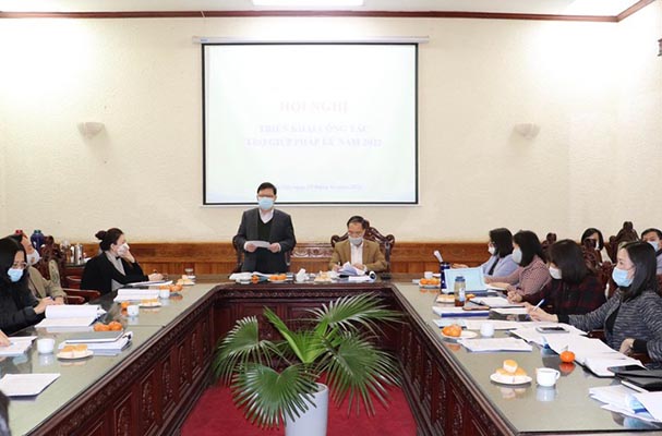 Chiều 13/1, Cục Trợ giúp pháp lý (Bộ Tư pháp) tổ chức Hội nghị Triển khai công tác trợ giúp pháp lý năm 2022. Đồng chủ trì hội nghị có Thứ trưởng Bộ Tư pháp Mai Lương Khôi và Cục trưởng Cục Trợ giúp pháp lý Cù Thu Anh. Tham gia hội nghị có đại diện của các đơn vị thuộc Bộ như: Văn phòng Bộ; Vụ Tổ chức cán bộ; Cục Kế hoạch- Tài chính,... và toàn thể của cán bộ, công chức, viên chức của Cục Trợ giúp pháp lý.