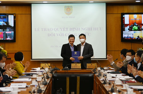 Chiều ngày 08/12, tại Hội nghị giao ban trực tuyến Thủ trưởng các đơn vị thuộc Bộ, đồng chí Lê Thành Long, Bộ trưởng Bộ Tư pháp đã trao Quyết định nghỉ hưu cho đồng chí Đặng Vũ Huân, nguyên Tổng Biên tập Tạp chí Dân chủ và Pháp luật được nghỉ hưu theo chế độ bảo hiểm xã hội từ ngày 01 tháng 12 năm 2021. Tham dự buổi Lễ còn có các Thứ trưởng: Phan Chí Hiếu, Nguyễn Khánh Ngọc, Đặng Hoàng Oanh, Mai Lương Khôi, Nguyễn Thanh Tịnh và toàn thể Lãnh đạo các đơn vị thuộc Bộ.