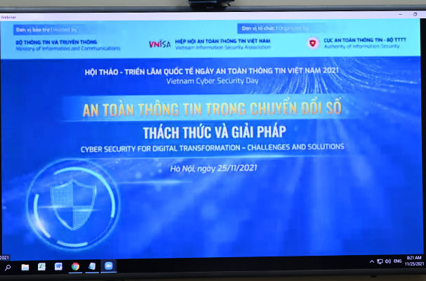 Sáng nay (25/11), Chương trình Hội thảo - triển lãm quốc tế Ngày An toàn thông tin Việt Nam 2021 lần thứ 14 được tổ chức trực tuyến, với điểm cầu chính tại Hà Nội do Cục An toàn thông tin (Bộ thông tin và truyền thông) phối hợp với Hiệp hội An toàn thông tin Việt Nam (VNISA). Đây là sự kiện lớn trong lĩnh vực an toàn thông tin (ATTT) mạng tiếp tục được Bộ Thông tin và Truyền thông (Bộ TT&TT) bảo trợ. Hội thảo có sự góp mặt của gần 1.000 khách tham dự phòng hội thảo online và 2.000 người theo dõi trực tiếp qua nền tảng mạng xã hội (trang facebook.com/vnisahn), với cả kênh tiếng Anh và tiếng Việt.
