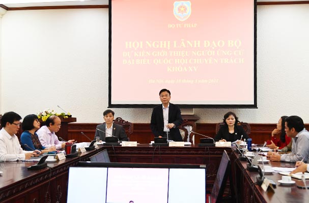 Ngày 11/3, Bộ Tư pháp đã tổ chức Hội nghị Lãnh đạo Bộ dự kiến giới thiệu người ứng cử Đại biểu Quốc hội (ĐBQH) khóa XV (tái cử); Hội nghị lấy ý kiến cử tri đối với người được dự kiến giới thiệu ứng cử ĐBQH khóa XV (tái cử) và Hội nghị Lãnh đạo Bộ mở rộng giới thiệu người ứng cử ĐHQH khoá XV (tái cử).