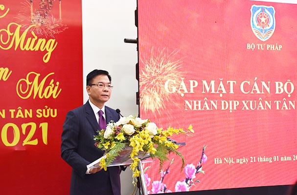 Sáng 21/1, Bộ Tư pháp đã tổ chức buổi gặp mặt thân mật với các cán bộ hưu trí nhân dịp Xuân Tân Sửu 2021. Tham dự buổi gặp mặt có Bộ trưởng Bộ Tư pháp Lê Thành Long và các Thứ trưởng: Nguyễn Khánh Ngọc, Đặng Hoàng Oanh, Nguyễn Thanh Tịnh, Mai Lương Khôi cùng các đồng chí nguyên là Lãnh đạo Bộ qua các thời kỳ.