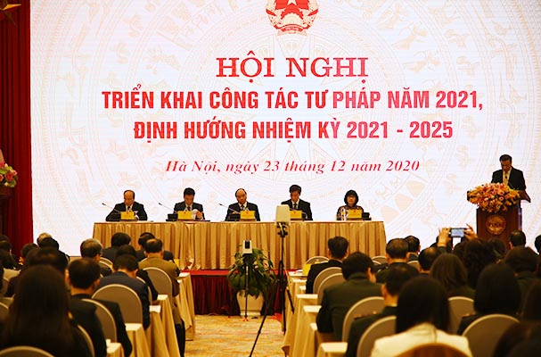 Sáng nay (23/12), Đồng chí Nguyễn Xuân Phúc, Ủy viên Bộ Chính trị, Thủ tướng Chính phủ tới dự và chỉ đạo Hội nghị trực tuyến triển khai công tác Tư pháp năm 2021. Dự Hội nghị có đồng chí Phan Đình Trạc, Bí thư trung ương Đảng, Trưởng ban nội chính trung ương, các đồng chí là Lãnh đạo các bộ, ban, ngành, tổ chức chính trị - xã hội ở Trung ương; Bí thư tỉnh ủy, Chủ tịch, Phó Chủ tịch UNBD tỉnh ở các điểm cầu địa phương; đại diện các sở, ban, ngành ở địa phương và đại diện lãnh đạo các cơ quan thi hành án dân sự.