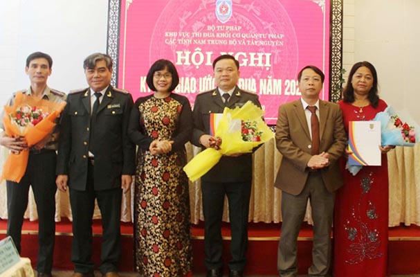 Sáng 14/12, tại thành phố Tuy Hòa, Khu vực thi đua khối cơ quan Tư pháp các tỉnh Nam Trung Bộ và Tây Nguyên- Bộ Tư pháp tổ chức Hội nghị tổng kết công tác thi đua, khen thưởng năm 2020 và ký kết giao ước thi đua năm 2021. Tham dự Hội nghị có đồng chí Đặng Hoàng Oanh, Thứ trưởng Bộ Tư pháp; đồng chí Hồ Thị Nguyên Thảo, Ủy viên Ban thường vụ Tỉnh ủy, Phó Chủ tịch UBND tỉnh Phú Yên; lãnh đạo Sở Tư pháp và Cục Thi hành án dân sự của 08 tỉnh, thành phố khu vực Nam Trung Bộ và Tây Nguyên (gồm Quảng Ngãi, Bình Định, Phú Yên, Khánh Hòa, Gia Lai, Kon Tum, Đăk Nông, Đăk Lăk) và các đại biểu liên quan.