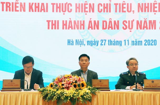 Ngày 27/11, Bộ trưởng Bộ Tư pháp Lê Thành Long đã chủ trì Hội nghị triển khai thực hiện chỉ tiêu, nhiệm vụ công tác thi hành án dân sự (THADS) năm 2021. Cùng tham dự có Thứ trưởng Mai Lương Khôi; Tổng Cục trưởng Tổng cục THADS Nguyễn Quang Thái; Lãnh đạo một số đơn vị thuộc Bộ; Lãnh đạo các đơn vị thuộc Tổng cục cùng Lãnh đạo các cơ quan THADS địa phương.