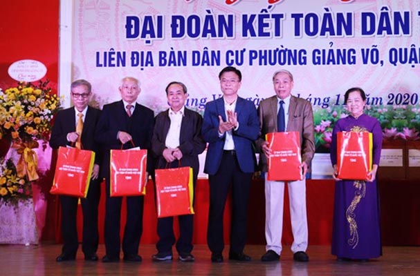 Ngày 16/11, Ủy ban Mặt trận Tổ quốc (UB MTTQ) phường Giảng Võ đã tổ chức ngày Hội Đại đoàn kết toàn dân tộc liên địa bàn dân cư phường Giảng Võ năm 2020. Tham dự ngày hội có Bộ trưởng Bộ Tư pháp Lê Thành Long, Phó Chánh Văn phòng cơ quan Uỷ ban TƯ MTTQ VN Phạm Thu Hương, Tổng cục trưởng Tổng cục Thi hành án dân sự Nguyễn Quang Thái, Chủ tịch Công đoàn Bộ Tư pháp Khương Thị Thanh Huyền, một số đồng chí Thủ trưởng đơn vị thuộc Bộ Tư pháp, Bí thư Quận uỷ Ba Đình Hoàng Minh Dũng Tiến, đại diện Cục Thi hành án dân sự, Sở Tư pháp Hà Nội, Thường vụ Đảng ủy, HĐND, UBND, UB MTTQ phường, trưởng các đoàn thể chính trị - xã hội, Bí thư chi bộ, Ban công tác mặt trận và hơn 300 đại biểu đại diện hộ gia đình trên toàn phường Giảng Võ.