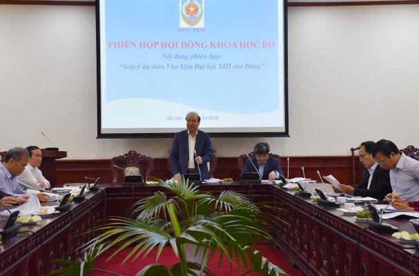 Sáng nay (30/10), Thứ trưởng Bộ Tư pháp Phan Chí Hiếu và Viện trưởng Viện Khoa học pháp lý Nguyễn Văn Cương đã chủ trì phiên họp Hội đồng khoa học Bộ góp ý dự thảo Văn kiện Đại hội XIII của Đảng. Tham dự phiên họp còn có thành viên Hội đồng khoa học cấp Bộ là các nhà khoa học, nhà nghiên cứu.