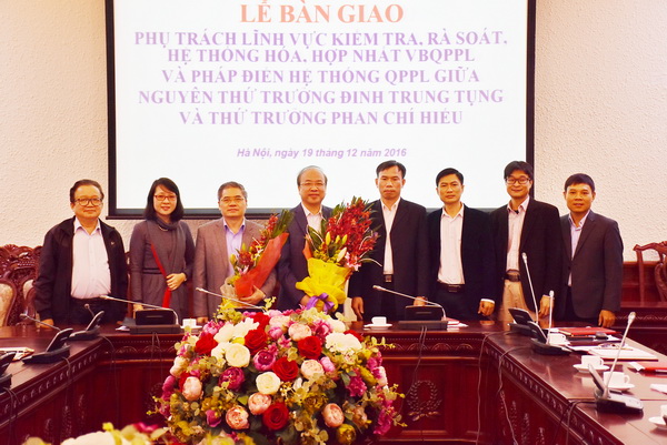 Sáng 19/12, Thứ trưởng Phan Chí Hiếu đã nhận bàn giao phụ trách lĩnh vực kiểm tra, rà soát, hệ thống hóa, hợp nhất văn bản quy phạm pháp luật (VBQPPL) và pháp điển hệ thống QPPL cùng lĩnh vực xây dựng, theo dõi chung việc thi hành pháp luật về dân sự, kinh tế từ nguyên Thứ trưởng Đinh Trung Tụng.