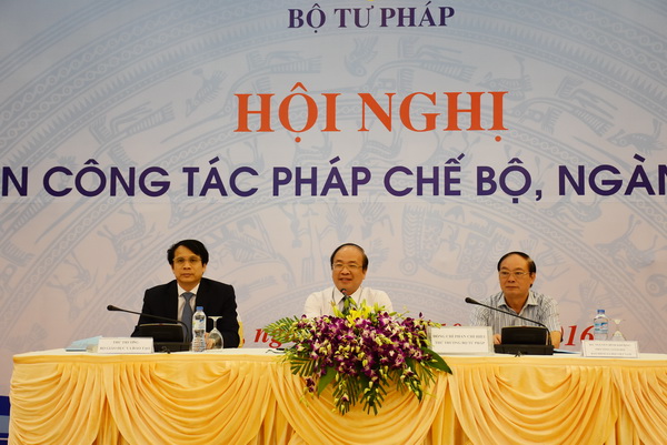Sáng 19/10, Bộ Tư pháp đã tổ chức Hội nghị giao ban công tác pháp chế Bộ, ngành năm 2016. Thứ trưởng Bộ Tư pháp Phan Chí Hiếu, Thứ trưởng Bộ Giáo dục và Đào tạo Phạm Mạnh Hùng, Phó Tổng giám đốc Bảo hiểm xã hội Việt Nam Nguyễn Đình Khương đồng chủ trì Hội nghị.