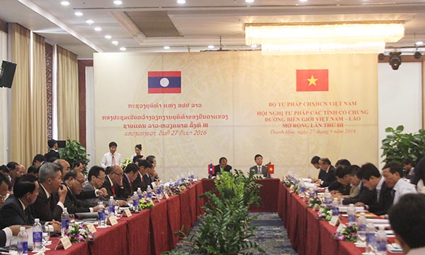 Sáng 27/9, Hội nghị Tư pháp các tỉnh có chung đường biên giới Việt Nam- Lào mở rộng lần thứ 3 được tổ chức tại Thanh Hóa. Bộ trưởng Bộ Tư Pháp Việt Nam Lê Thành Long và Bộ trưởng Bộ Tư pháp Lào ông Xay-xỉ-Xẳn-ti-vông chủ trì Hội nghị.