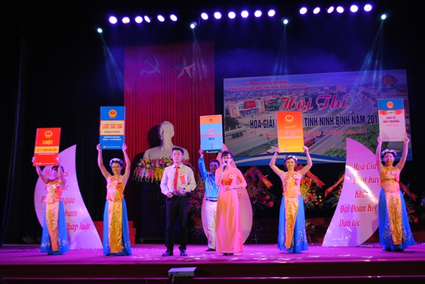 Thực hiện chỉ đạo của Ban tổ chức hội thi Hòa giải viên giỏi Trung ương và UBND tỉnh Ninh Bình, ngày 25/8/2016 Ban Tổ chức hội thi Hòa giải viên giỏi tỉnh Ninh Bình đã tổ chức thành công vòng chung khảo Hội thi “Hòa giải viên giỏi” trên địa bàn tỉnh. Đến dự có đồng chí Phan Chí Hiếu, Thứ trưởng Bộ Tư pháp, Trưởng ban Tổ chức hội thi Hòa giải viên giỏi Trung ương; đồng chí Tống Quang Thìn, Phó Chủ tịch Ủy ban nhân dân (UBND) tỉnh, Chủ tịch Hội đồng phối hợp phổ biến, giáo dục pháp luật tỉnh; đồng chí Nguyễn Ngọc Thạch, Tỉnh ủy viên, Phó Chủ tịch UBND tỉnh; các đồng chí trong Ban Tổ chức Hội thi tỉnh; lãnh đạo các sở, ban, ngành, đoàn thể và lãnh đạo các huyện, thành phố trên địa bàn tỉnh.
