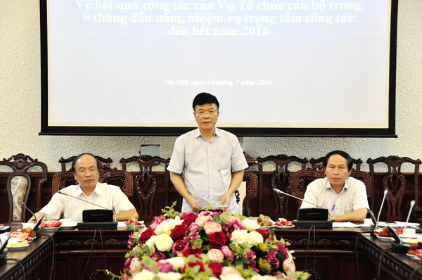 Vụ Tổ chức cán bộ đã cơ bản làm tốt công tác tham mưu về tổ chức bộ máy, cán bộ; chất lượng cán bộ các đơn vị thuộc Bộ từng bước được nâng lên rõ rệt… là nhận định của Bộ trưởng Bộ Tư pháp Lê Thành Long tại buổi làm việc giữa lãnh đạo Bộ và Vụ Tổ chức cán bộ chiều qua (14/7). Cùng tham dự buổi làm việc có Thứ trưởng Phan Chí Hiếu, Thứ trưởng Lê Tiến Châu và đại diện lãnh đạo một số đơn vị thuộc Bộ và toàn thể cán bộ Vụ Tổ chức cán bộ.