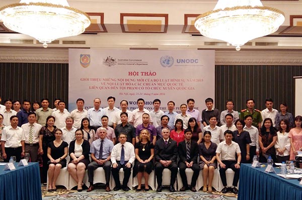 Nhằm nội luật hóa các quy định có liên quan của điều ước quốc tế về tội phạm có tổ chức xuyên quốc gia mà nước ta là thành viên, Bộ luật Hình sự năm 2015 đã có nhiều quy định sửa đổi, bổ sung. Các sửa đổi, bổ sung này được các chuyên gia quốc tế tham dự hội thảo do Bộ Tư pháp tổ chức ngày 23/5 hoan nghênh và chia sẻ thêm những kinh nghiệm để thực thi hiệu quả các điều khoản mới.