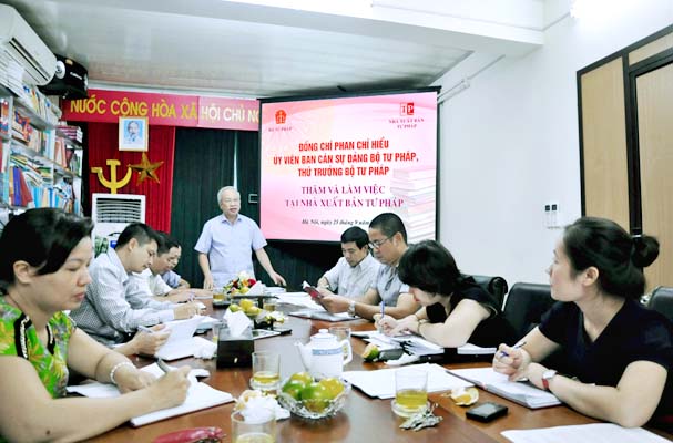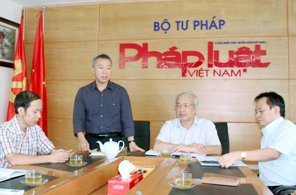 Sáng nay (26/9), Thứ trưởng Bộ Tư pháp Phan Chí Hiếu đã tới thăm và làm việc với Ban Biên tập và các cán bộ chủ chốt của Báo Pháp luật Việt Nam về các mặt công tác của Báo. Tổng biên tập Báo Pháp luật Việt Nam Đào Văn Hội, các Phó Tổng Biên tập: Đặng Ngọc Luyến, Vũ Hoàng Diệp, Trần Thị Hương Mai cùng toàn thể các Trưởng, Phó Ban cùng tham dự buổi làm việc.