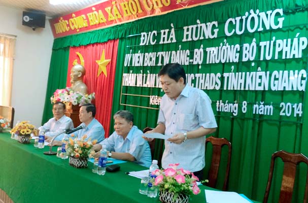Để thực hiện có hiệu quả Nghị quyết số 718/NQ-UBTVQH13 ngày 02 tháng 01 năm 2014 của Uỷ ban Thường vụ Quốc hội ban hành Kế hoạch triển khai thi hành Hiến pháp nước Cộng hòa xã hội chủ nghĩa Việt Nam; Quyết định số 251/QĐ-TTg ngày 13/02/2014 của Thủ tướng Chính phủ ban hành Kế hoạch của Chính phủ tổ chức triển khai thi hành Hiến pháp nước Cộng hòa xã hội chủ nghĩa Việt Nam, Bộ Tư pháp sẽ tổ chức cuộc thi viết “Tìm hiểu Hiến pháp nước Cộng hòa xã hội chủ nghĩa Việt Nam”. Chiều 05/8, Bộ Tư pháp đã tổ chức họp báo cáo công tác tổ chức cuộc thi này. Bộ trưởng Bộ Tư pháp Hà Hùng Cường đã đến dự và chỉ đạo.