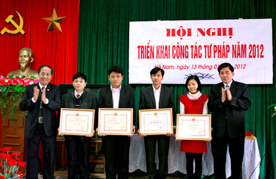 Đồng chí Vũ Xuân Thủy, Phó Giám đốc Sở Tư pháp đã phát động phong trào thi đua năm 2012 với khẩu hiệu “Toàn ngành Tư pháp ra sức thi đua nâng cao chất lượng, hiệu quả, đảm bảo tiến độ thực hiện các nhiệm vụ được giao”.