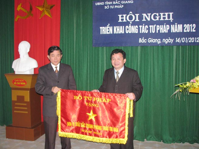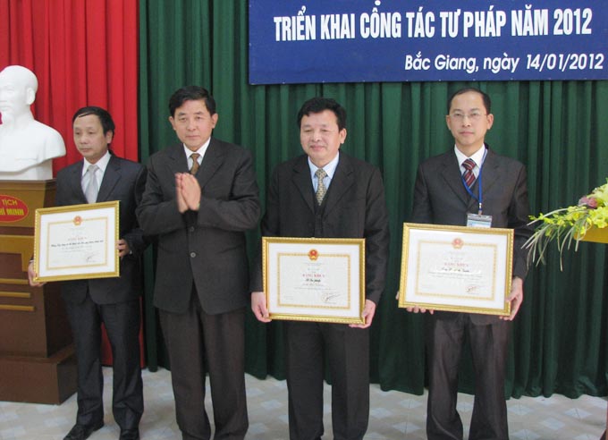 Tại Hội nghị, nhiều tập thể, cá nhân có thành tích xuất sắc trong ngành đã được biểu dương, khen thưởng, trong đó, Sở Tư pháp được Bộ Tư pháp tặng Cờ thi đua của ngành năm 2011.