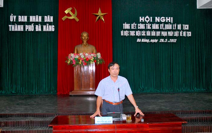 Sáng ngày 29/3/2012, UBND thành phố Đà Nẵng tổ chức Hội nghị tổng kết công tác đăng ký, quản lý hộ tịch và thực hiện các văn bản quy phạm pháp luật về hộ tịch trên địa bàn thành phố.