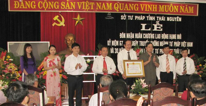 Ngày 25/8, Sở Tư pháp tỉnh Thái Nguyên đã tổ chức Lễ kỷ niệm 67 năm ngày thành lập ngành Tư pháp Việt Nam (28/8/1945-28/8/2012), 30 năm ngày thành lập Sở (1982-2012) và đón nhận Huân chương Lao động hạng Nhì.