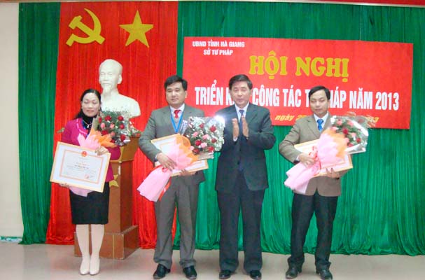 Với những thành tích đã đạt được ngành Tư pháp Hà Giang đã vinh dự được Bộ Tư pháp trao tặng Bằng khen cho 01 tập thể và 03 cán nhân có thành tích trong công tác; Giám đốc Sở Tư pháp tặng danh hiệu chiến sỹ thi đua cơ sở cho 16 cá nhân.