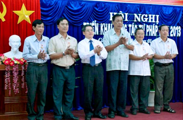 Trước đó, Hội nghị đã công bố các quyết định khen thưởng của Bộ Tư pháp tặng cờ “Đơn vị thi đua xuất sắc năm 2012” cho Sở Tư pháp tỉnh Cà Mau; Thứ trưởng Đinh Trung Tụng đã trao 29 Kỷ niện chương Vì sự nghiệp tư pháp cho các cá nhân có công lao đóng góp cho sự nghiệp Tư pháp Việt Nam và Bằng khen cho 1 tập thể, 4 cá nhân. Đồng chí Nguyễn Tiến Hải, Ủy viên Ban Thường vụ Tỉnh ủy, Phó Chủ tịch UBND tỉnh trao Cờ thi đua xuất sắc cho tập thể Văn phòng Sở, danh hiệu tập thể lao động xuất sắc cho 03 đơn vị và tặng Bằng khen cho 11 cá nhân. Giám đốc Sở Tư pháp công nhận danh hiệu tập thể lao động tiên tiến cho 10 tập thể và 69 cá nhân và 32 cá nhân đạt danh hiệu chiến sĩ thi đua cơ sở./-