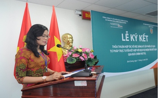 Tại Lễ ký kết, Bà Nguyễn Anh Hoa - Giám đốc Sở Tư pháp cho biết, trong những năm qua Sở Tư pháp tỉnh Bình Dương đã thực hiện tốt việc cấp Phiếu LLTP của công dân với số lượng ngày càng tăng. Để góp phần thực hiện cải cách thủ tục hành chính, thực hiện tốt yêu cầu của công dân ngay từ tháng 3/2014, Sở Tư pháp tỉnh Bình Dương đã thực hiện việc trả kết quả cấp Phiếu LLTP qua dịch vụ bưu chính và là một trong những địa phương đầu tiên trong cả nước đã áp dụng hình thức này. Thực hiện Nghị quyết số 36a/NQ-CP của Chính phủ về Chính phủ điện tử, Quyết định số 19/QĐ-TTg về phê duyệt “Đề án thí điểm cấp Phiếu lý lịch tư pháp qua dịch vụ bưu chính, đăng ký cấp Phiếu lý lịch tư pháp trực tuyến” và đa dạng hóa việc cung ứng dịch vụ, tạo điều kiện thuận lợi hơn nữa cho công dân trong việc lựa chọn những dịch vụ tốt nhất thực hiện yêu cầu giải quyết thủ tục hành chính nói chung và cấp Phiếu LLTP nói riêng, Sở Tư pháp tỉnh Bình Dương và Bưu chính Viettel tổ chức ký kết thỏa thuận hợp tác về việc đăng ký cấp Phiếu lý lịch tư pháp trực tuyến kết hợp với dịch vụ nhận trả kết quả qua bưu chính Viettel.