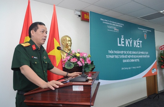 Sáng ngày 17/6/2016, tại Hội trường Sở Tư pháp tỉnh Bình Dương đã diễn ra lễ ký kết thỏa thuận hợp tác về việc đăng ký cấp Phiếu lý lịch tư pháp trực tuyến kết hợp với dịch vụ nhận trả kết quả qua bưu chính Viettel. Tham dự buổi lễ có bà Nguyễn Anh Hoa - Giám đốc Sở Tư pháp, ông Nguyễn Đắc Luân – Phó tổng giám đốc bưu chính Viettel và đại diện lãnh đạo Sở Thông tin và truyền thông, Công an tỉnh, VKSND tỉnh, TAND tỉnh, THADS tỉnh, các phòng, đơn vị thuộc Sở Tư pháp, phóng viên Báo Bình Dương, Đài phát thanh truyền hình Bình Dương.