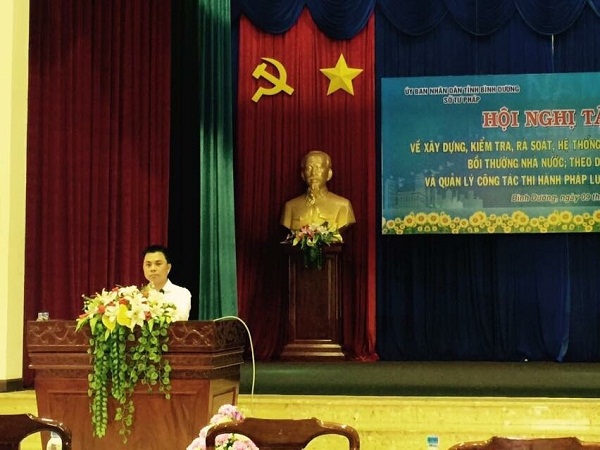 Thực hiện Kế hoạch số 3853/KH-UBND ngày 02/11/2015 của Ủy ban nhân dân tỉnh Bình Dương về việc triển khai thi hành Luật Ban hành văn bản quy phạm pháp luật trên địa bàn tỉnh Bình Dương; Kế hoạch số 3478/KH-UBND ngày 28/12/2016 của UBND tỉnh ban hành kế hoạch theo dõi thi hành pháp luật trên địa bàn tỉnh Bình Dương năm 2016 và triển khai thực hiện ý kiến chỉ đạo của Thủ tướng Chính phủ về báo cáo công tác theo dõi tình hình thi hành pháp luật năm 2014; Kế hoạch số 3528/KH-UBND ngày 30/12/2016 của UBND tỉnh ban hành kế hoạch triển khai nhiệm vụ công tác thi hành pháp luật về xử lý vi phạm hành chính năm 2016 trên địa bàn tỉnh Bình Dương; Kế hoạch số 480/KH-UBND ngày 24/02/2016 của UBND tỉnh triển khai thực hiện công tác bồi thường nhà nước năm 2016 trên địa bàn tỉnh Bình Dương, ngày 09/08/2016, tại Hội trường 1 Trường Chính trị tỉnh Bình Dương, Sở Tư pháp đã tổ chức tập huấn về xây dựng, kiểm tra, rà soát, hệ thống hóa văn bản quy phạm pháp luật; bồi thường nhà nước; theo dõi thi hành pháp luật và quản lý công tác thi hành pháp luật về xử lý vi phạm hành chính.