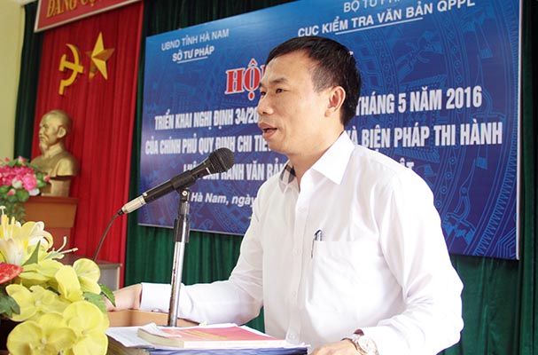 Sáng 14/11/2016 tại Hà Nam, Sở Tư pháp phối hợp với Cục Kiểm tra văn bản quy phạm pháp luật (VBQPPL) – Bộ Tư pháp tổ chức hội nghị Triển khai Nghị định 34/2016/NĐ-CP ngày 14/5/2016 của Chính phủ quy định chi tiết một số điều và biện pháp thi hành Luật Ban hành VBQPPL.