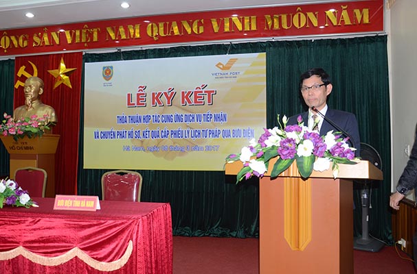 Vừa qua, Sở Tư pháp và Bưu điện tỉnh Hà Nam đã tổ chức Lễ ký kết Thỏa thuận hợp tác tiếp nhận, chuyển phát hồ sơ và trả kết quả cấp Phiếu lý lịch tư pháp qua dịch vụ bưu điện.