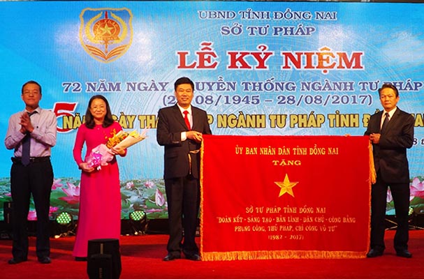 Vừa qua, Sở Tư pháp tỉnh Đồng Nai đã long trọng tổ chức Lễ kỷ niệm 72 năm ngày Truyền thống ngành Tư pháp Việt Nam (28/8/1945 – 28/8/2017) và 35 năm ngày Thành lập ngành Tư pháp tỉnh Đồng Nai (1982-2017).Tham dự Lễ kỷ niệm có đồng chí Lê Tiến Châu – Thứ trưởng Bộ Tư pháp, đồng chí Lê Thị Thu Ba – Nguyên Ủy viên Trung ương Đảng, nguyên Chủ nhiệm Ủy ban Tư pháp của Quốc hội, nguyên Thứ trưởng Bộ Tư pháp, đồng chí Trần Văn Tư - Phó Bí thư Thường trực Tỉnh ủy, đồng chí Đinh Quốc Thái – Phó Bí thư Tỉnh ủy, Chủ tịch UBND tỉnh, các đồng chí lãnh đạo các sở, ban ngành, đoàn thể cấp tỉnh, UBND và Phòng Tư pháp cấp huyện, các tổ chức hành nghề công chứng, thừa phát lại và gần 100 công chức, viên chức ngành Tư pháp tỉnh Đồng Nai qua các thời kỳ.