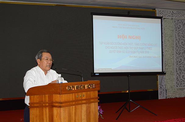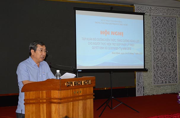 Nhằm bồi dưỡng kiến thức pháp luật và kỹ năng trợ giúp pháp lý cho những người thực hiện trợ giúp pháp lý trên địa bàn tỉnh, sáng 24/7/2018, Trung tâm Trợ giúp pháp lý Nhà nước thuộc Sở Tư pháp tỉnh Bình Định tổ chức Hội nghị tập huấn tăng cường năng lực cho người thực hiện trợ giúp pháp lý theo Quyết định số 32/2016/QĐ-TTg.