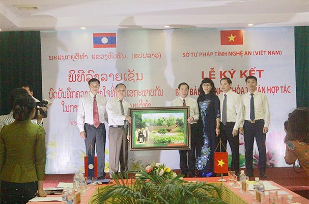 Tại buổi lễ ký kết, ông Hoàng Quốc Hào, Giám đốc Sở Tư pháp Nghệ An đã điểm qua những thành tích đã đạt được của ngành tại địa phương. Đồng thời, báo cáo một số kết quả trong hợp tác thỏa thuận về công tác tư pháp giữa hai nước Việt Nam – Lào, trong đó, nổi bật nhất là thỏa thuận giải quyết vấn đề di cư tự do và kết hôn không giá thú tại hai tỉnh. Qua làm việc và trao đổi kinh nghiệm, hai bên đã thống nhất một số nội dung hợp tác trong thời gian tới.