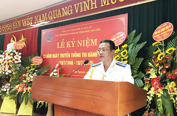 Ngày 19/7, Cục Thi hành án dân sự (THADS) tỉnh Thái Nguyên đã tổ chức Lễ Kỷ niệm 73 năm Ngày Truyền thống THADS (19/7/1946 - 19/7/2019). Dự buổi lễ có đồng chí Nhữ Văn Tâm, UVBTV Tỉnh ủy, Phó Chủ tịch Thường trực UBND tỉnh, Trưởng Ban chỉ đạo THADS tỉnh; đồng chí Nguyễn Văn Chung, Tỉnh ủy viên, Chánh án TAND tỉnh, đồng chí Đỗ Thị Thìn, Tỉnh ủy viên Tổng biên tập Báo Thái Nguyên, đồng chí Phạm Thu Thủy, Phó trưởng Ban Nội chính Tỉnh ủy; đại diện lãnh đạo các sở, ban, ngành; lãnh đạo Cục THADS tỉnh, lãnh đạo các Phòng thuộc Cục; lãnh đạo Chi cục THADS các huyện, thành phố, thị xã thuộc tỉnh và toàn thể cán bộ, công chức, người lao động cơ quan Cục THADS tỉnh.