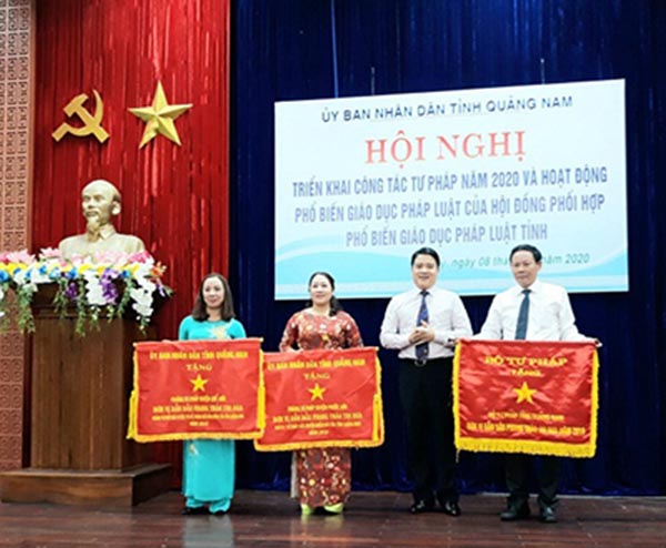 Nhân Hội nghị này, đồng chí Trần Văn Tân đã trao tặng Cờ thi đua ngành tư pháp cho tập thể Sở Tư pháp Quảng Nam và trao tặng Cờ thi đua của UBND tỉnh cho 02 tập thể Phòng Tư pháp huyện Quế Sơn và Phòng Tư pháp huyện Phước Sơn vì đã có thành tích xuất sắc trong công tác, dẫn đầu phong trào thi đua ngành tư pháp các huyện, thị xã, thành phố của tỉnh năm 2019./.
