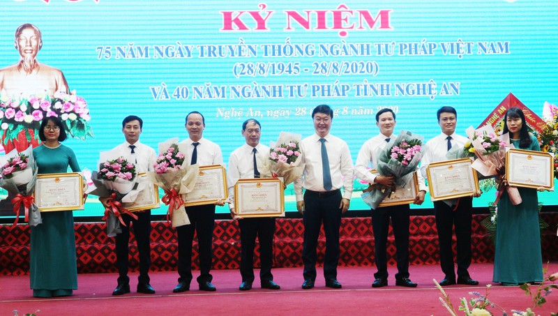 Tại buổi lễ, các cá nhân và tập thể của Sở Tư pháp Nghệ An đã nhận Bằng khen của UBND tỉnh Nghệ An.