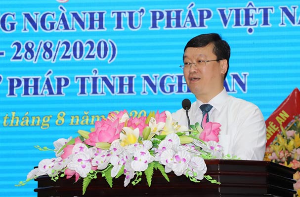 Phát biểu tại lễ kỷ niệm, Chủ tịch UBND tỉnh Nghệ An Nguyễn Đức Trung ghi nhận những đóng góp quan trọng đối với sự phát triển kinh tế xã hội của tỉnh nhà. Cùng với sự quan tâm, lãnh đạo chỉ đạo của cấp ủy Đảng, chính quyền các cấp, ngành Tư pháp đã luôn chủ động, sáng tạo, hoàn thành tốt mọi nhiệm vụ được giao, đáp ứng yêu nhiệm vụ chính trị của địa phương.