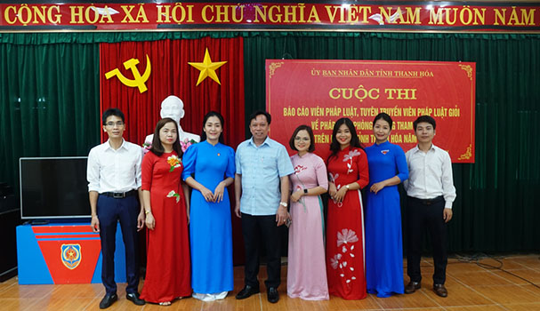 Đ/c Hoàng Văn Truyền – PGĐ Sở Tư pháp chụp ảnh lưu niệm cùng một số thí sinh xuất sắc trong Cuộc thi “Báo cáo viên pháp luật, tuyên truyền viên pháp luật giỏi về pháp luật phòng, chống tham nhũng” năm 2021